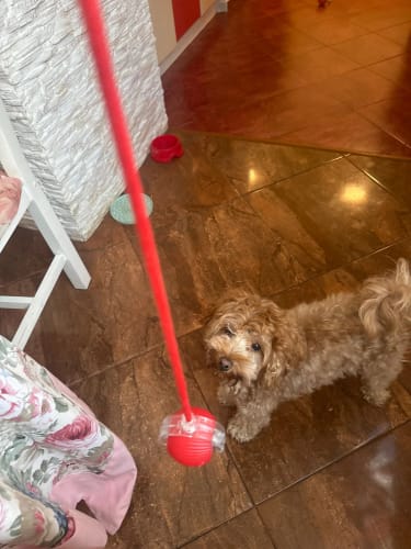 Ostimme sen jotta pentumme saisi vähän ylimääräistä stimulaatiota kun meillä ei ole aina aikaa leikkiä koko ajan. Se liikkuu arvaamattomasti ja saa hänet hyppimään ympäriinsä kuin hullu – täysin fantastista katsottavaa!